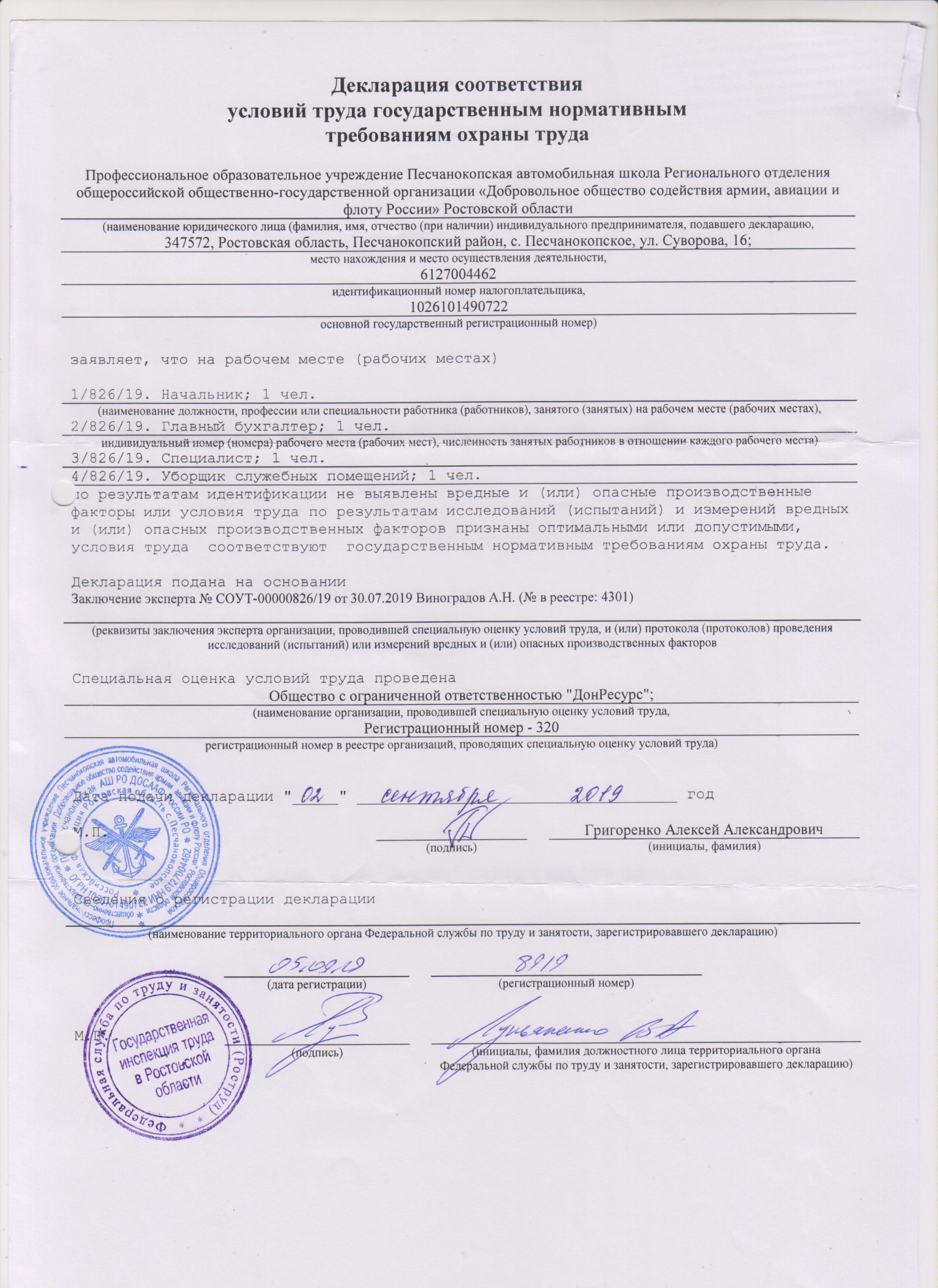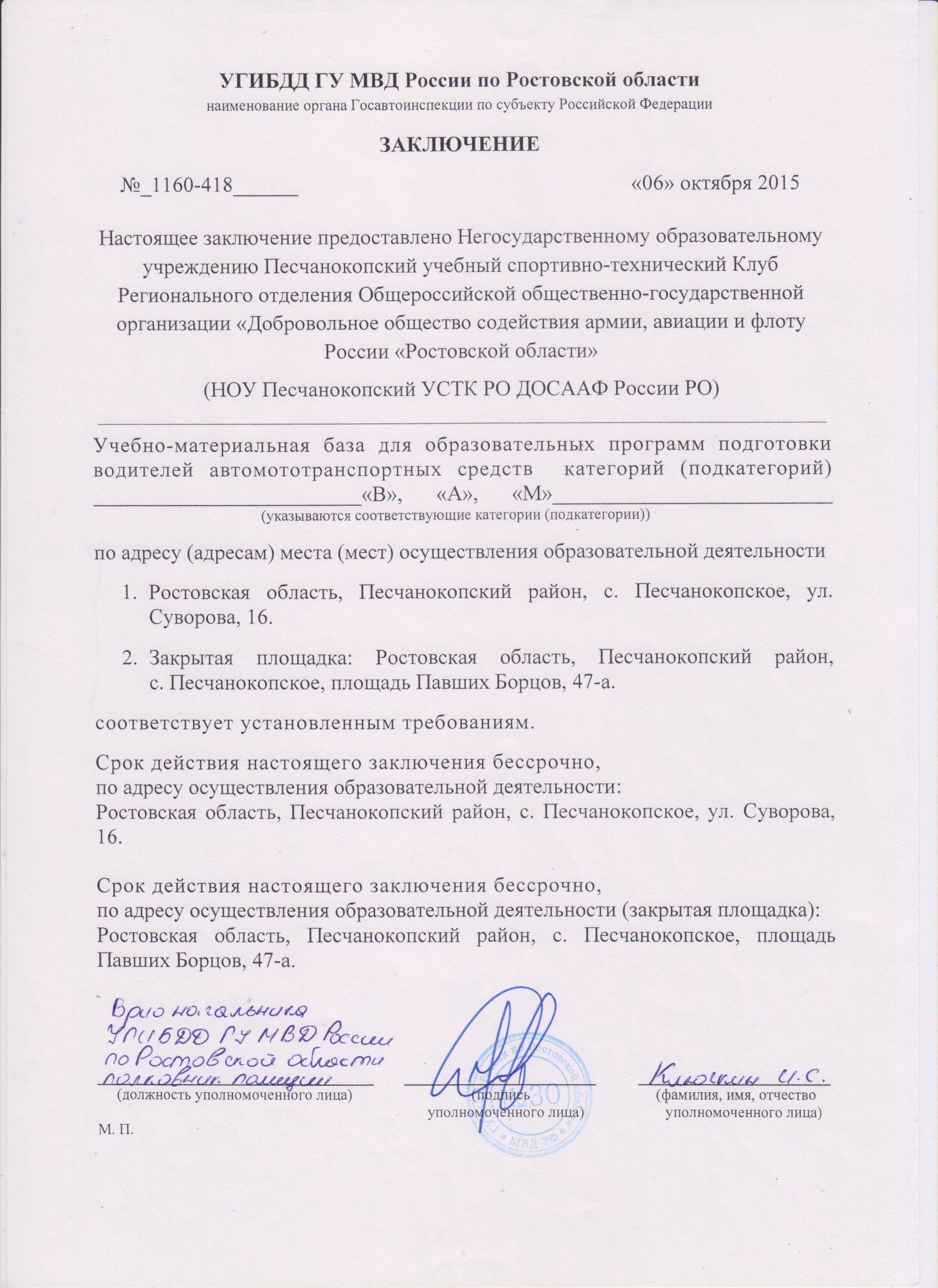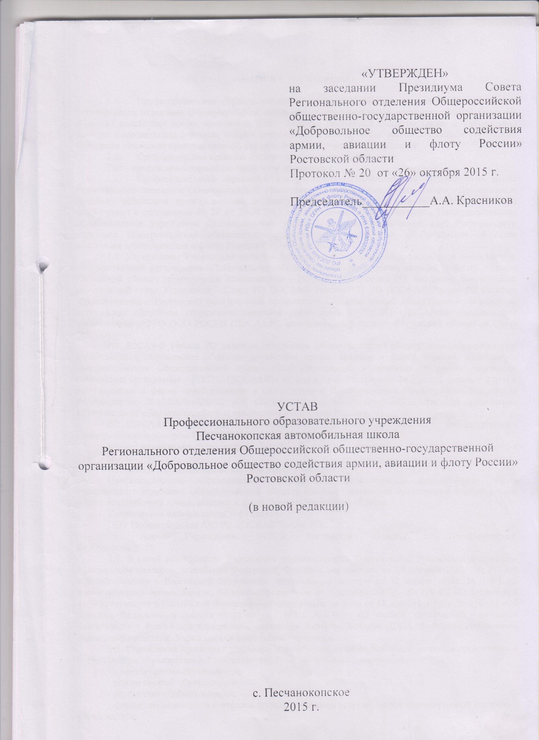 Устав Песчанокопской АШ РО ДОСААФ России РО